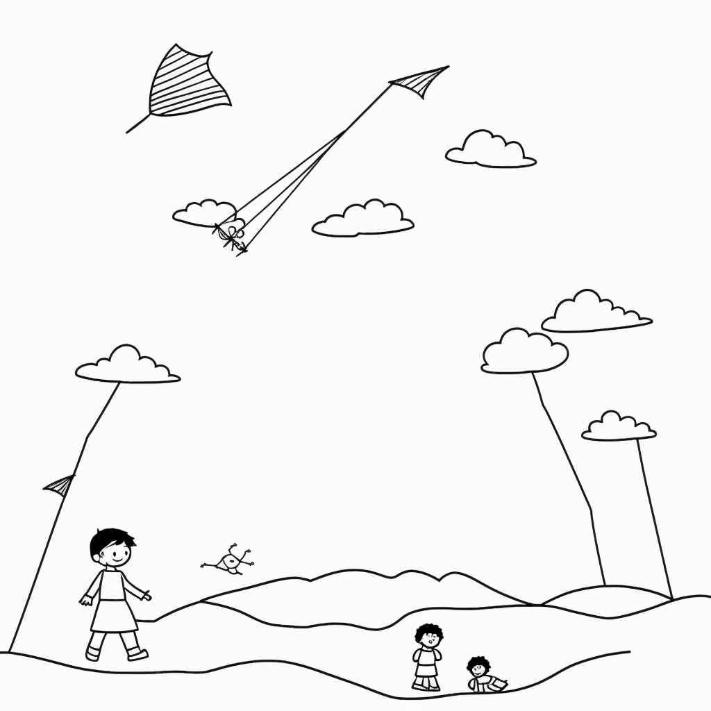 Discover the joy of simple line art with our latest coloring book page featuring children flying kites on a hill. This delightful black and white outline captures the playful essence of childhood, inviting you to bring it to life with your own colors. Perfect for a relaxing afternoon, this coloring page offers a creative escape. Grab your favorite coloring tools and let your imagination soar as you fill in the whimsical scene of children enjoying kite flying on a picturesque hill.