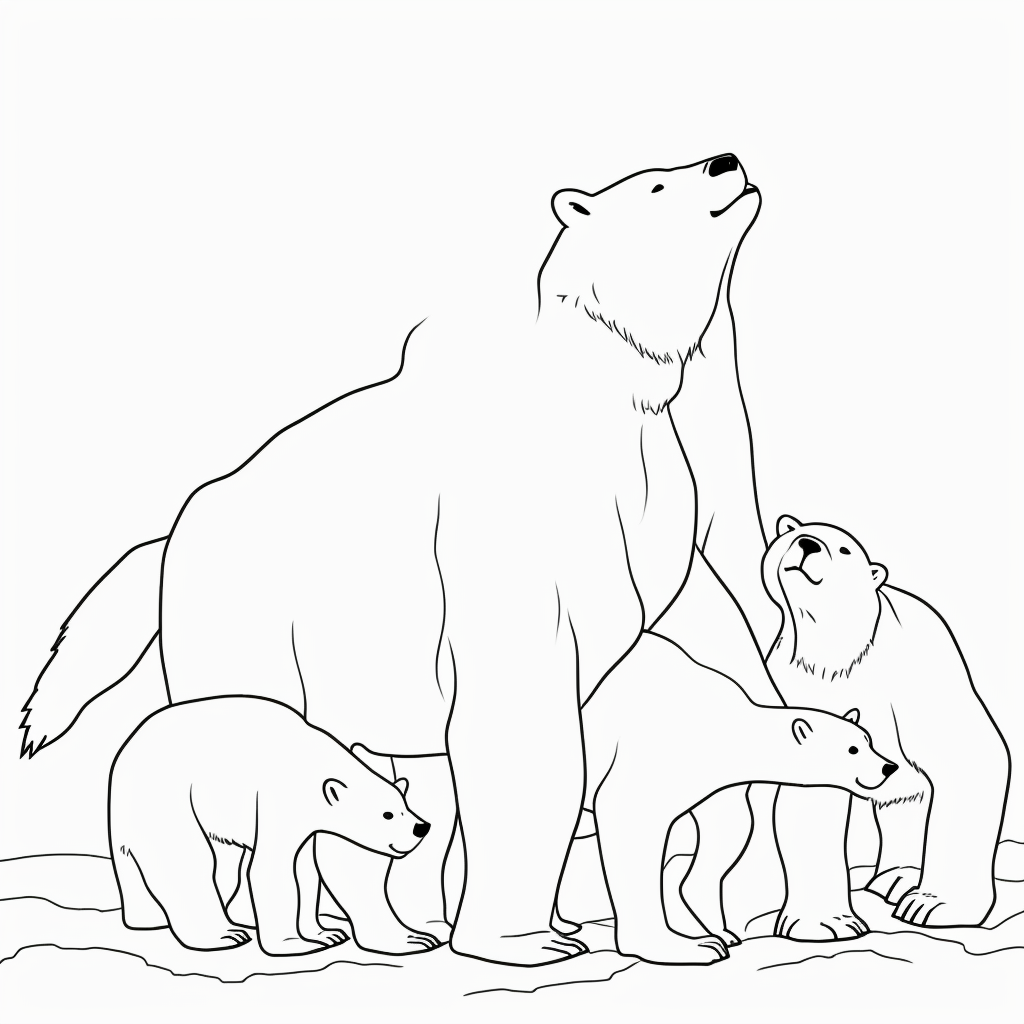 Dive into a playful winter wonderland with our delightful coloring page featuring polar bears frolicking in the snow. Perfect for children and adults alike, this simple line art captures the essence of these majestic creatures in their natural habitat. Get inspired to add your own colorful twist to these black and white outlines, where imagination knows no bounds. Enjoy hours of creative fun while exploring the serene beauty of polar bears at play.