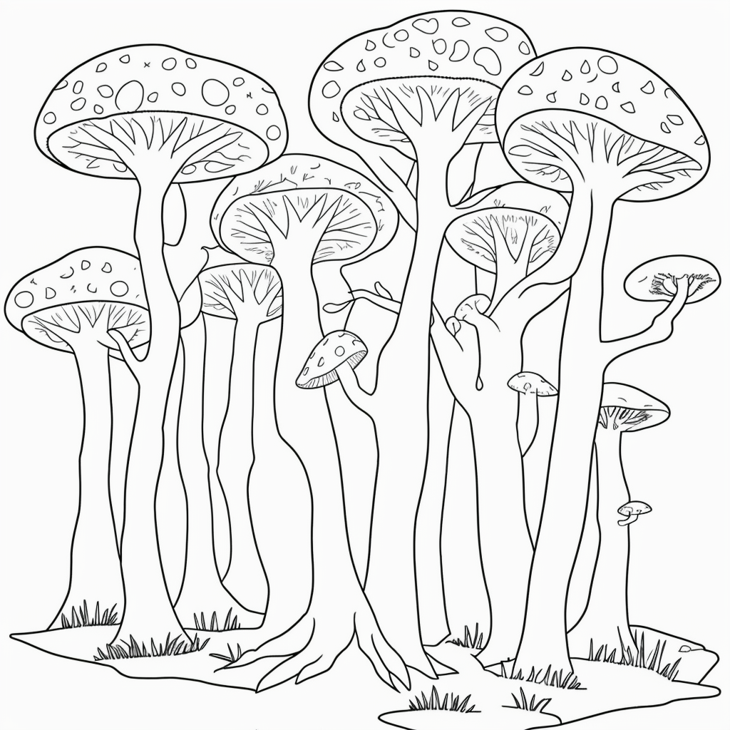 Step into a magical world with our enchanted forest coloring page. This delightful line art features smiling trees and whimsical mushrooms, perfect for a relaxing coloring session. Unleash your creativity as you bring this black and white outline to life, with no shading or color limitations. Designed as a simple yet captivating activity, it's an ideal choice for both beginners and seasoned artists. Discover the joy in each brushstroke and let this enchanted forest inspire your artistic journey.