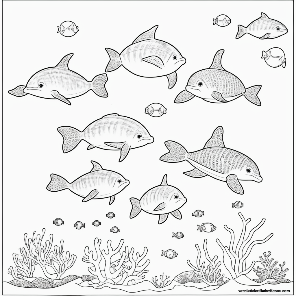 Dive into the enchanting world of simple line art with our friendly sea creatures coloring page. Perfect for both kids and adults, this black and white outline features delightful fish, a charming turtle, and a playful dolphin swimming amidst coral and bubbles. Unleash your creativity and enjoy a soothing artistic experience as you bring these adorable sea creatures to life. Ideal for relaxation and inspiration, this coloring page offers endless possibilities for imaginative coloring adventures.