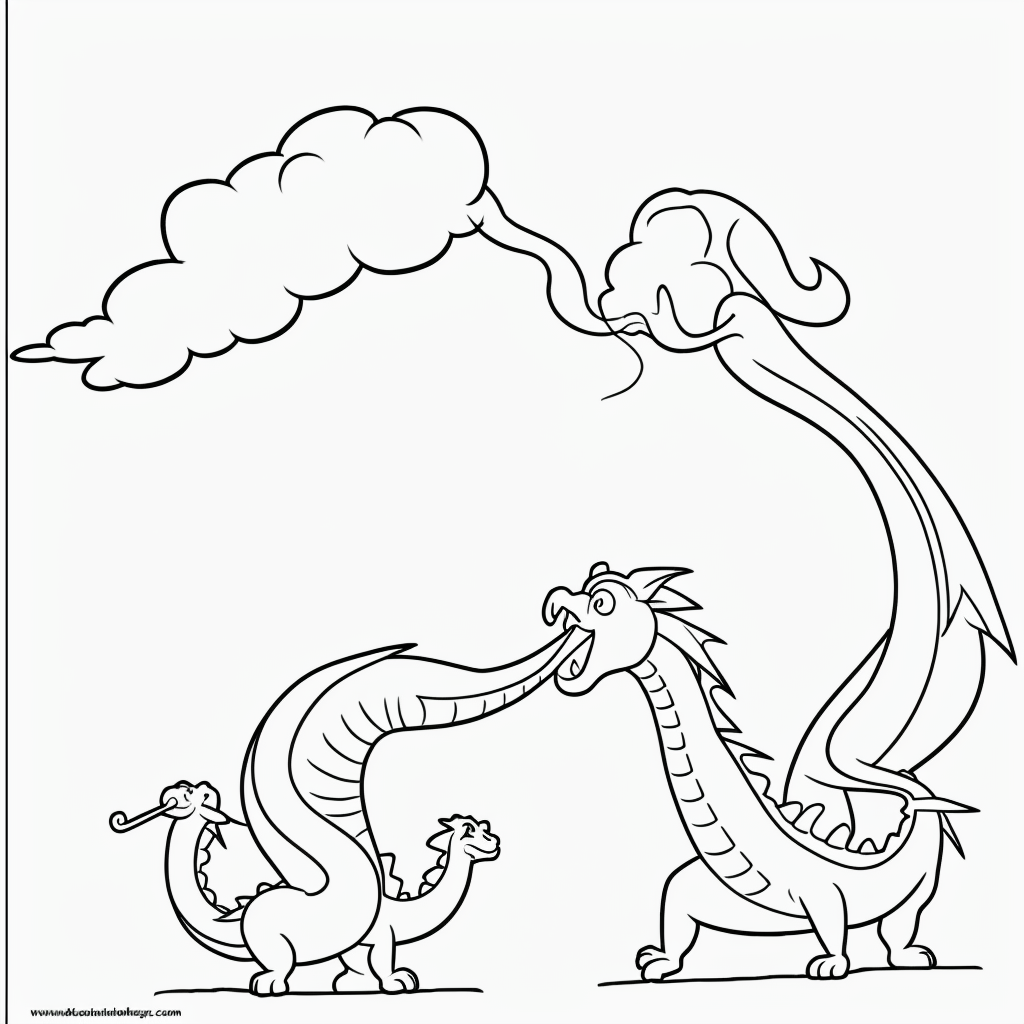 Discover the charm of our friendly dragon line art designed for coloring enthusiasts. This delightful cartoon-style dragon, blowing smoke in the sky, offers a whimsical addition to your coloring book. Perfect for all ages, our black and white outline artwork provides a canvas for your creativity to flow. Dive into a world of imagination with this simple yet captivating illustration, sure to bring joy and relaxation.
