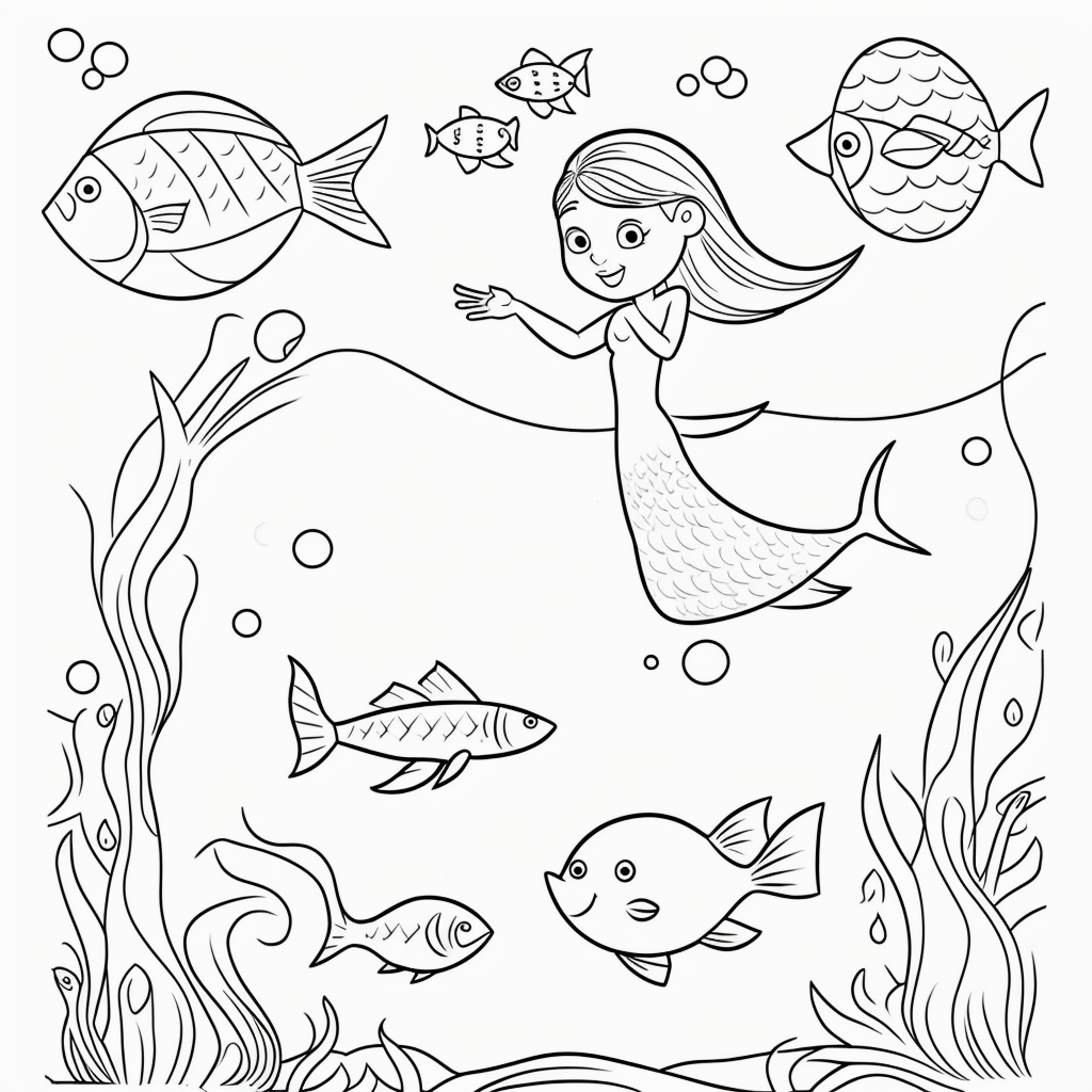 Dive into a world of creativity with our engaging coloring book page featuring a charming mermaid swimming alongside playful fish. Designed in a cartoon style with bold outlines, this page is perfect for coloring enthusiasts of all ages. Whether you're a fan of magical mermaids or simply love ocean-themed art, you'll find joy and relaxation as you bring this delightful scene to life. Grab your favorite coloring tools, gather your friends, and let your imagination swim free!